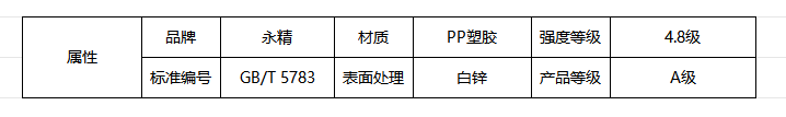 GB/T5783-A级-4.8级-PP塑胶-白锌