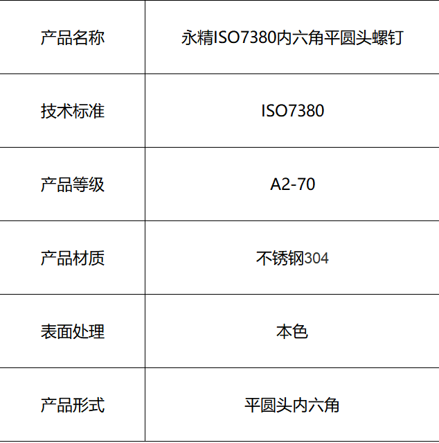 产品名称:永精ISO7380内六角平圆头螺钉