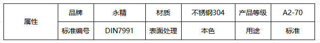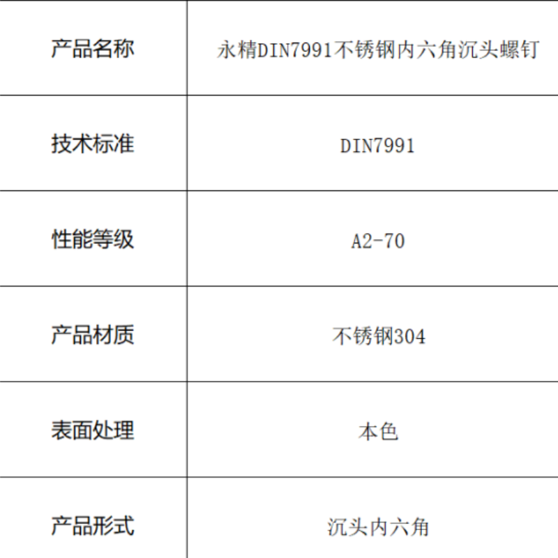 产品名称:永精DIN7991不锈钢内六角沉头螺钉