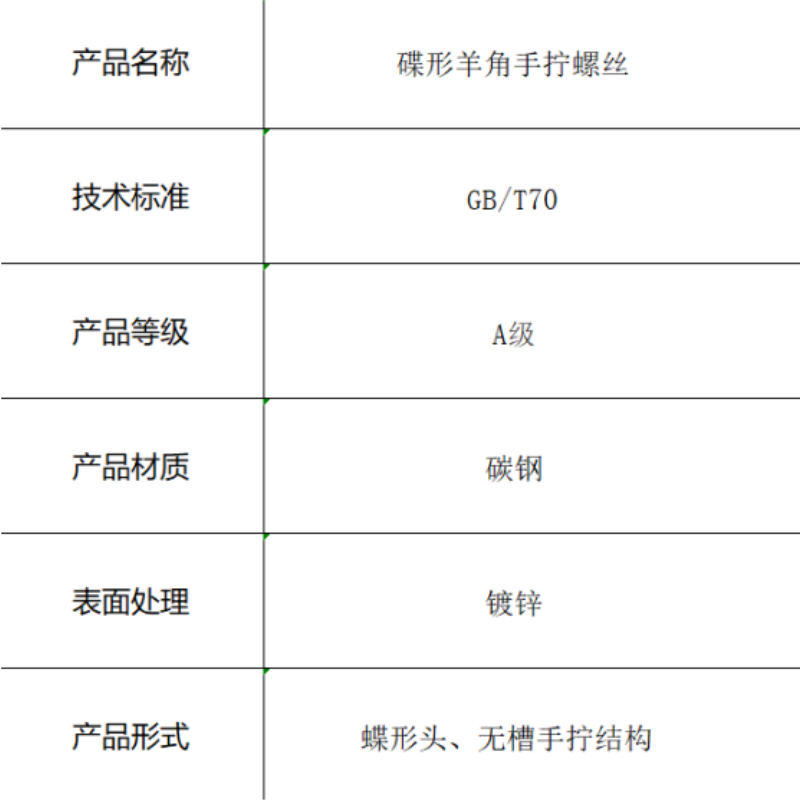 本产品为符合GB/T70标准的碟形羊角手拧螺丝,采用碳钢材料制造并达到4.8级性能等级。其羊角状蝶形头部设计符合人体工学,提供舒适的手拧操作体验,无需工具即可快速拆装。独特的羊角造型便于手指施力,既美观又实用。表面镀锌处理提供良好的防腐蚀保护,确保产品在常规环境下的使用寿命。