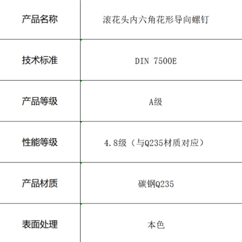 产品名称:滚花头内六角花形导向螺钉