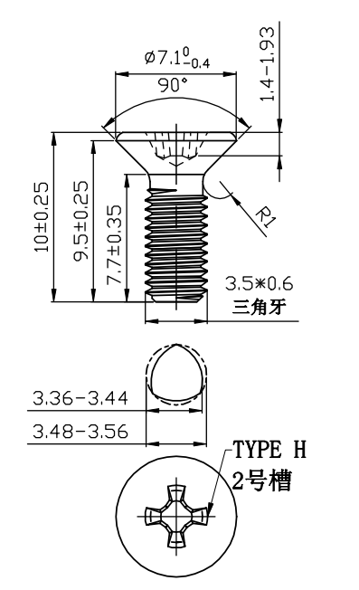 头部槽型:十字槽