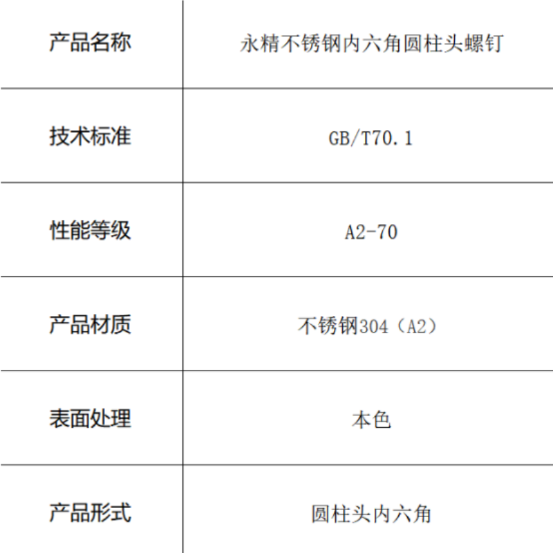 产品名称:内六角圆柱头螺钉