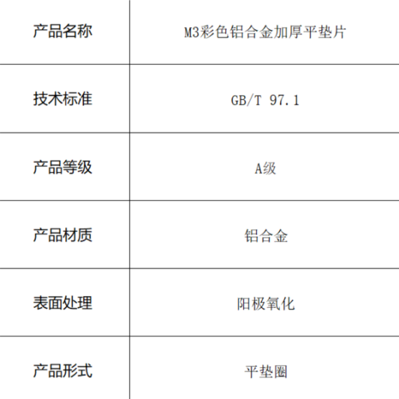 产品名称:M3彩色铝合金加厚平垫片