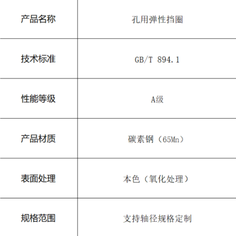 2 可靠轴向定位:牢固卡于孔槽内,有效限制零部件轴向位移,安全可靠