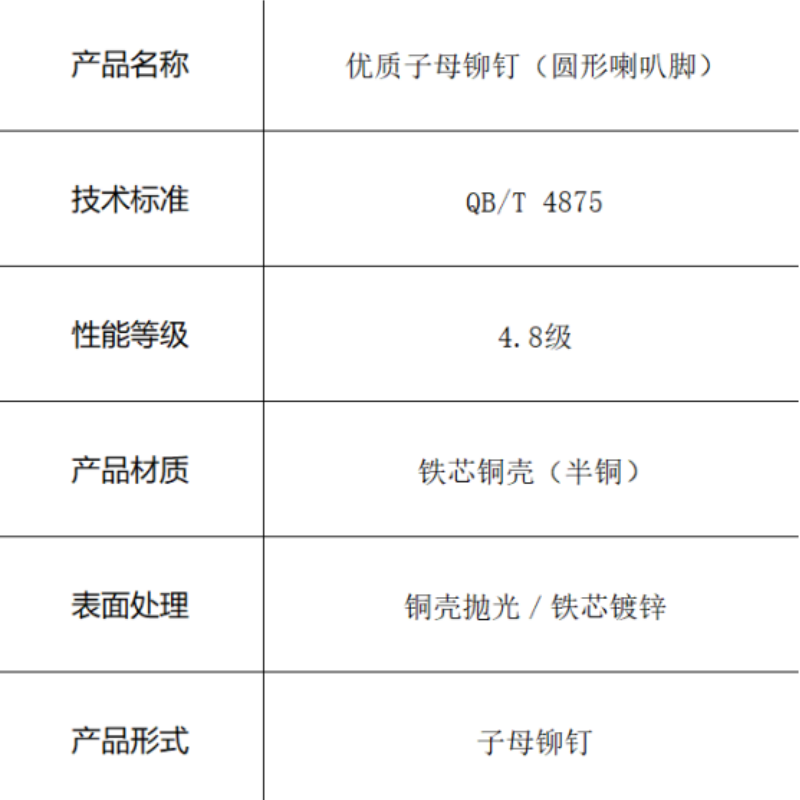 QB/T 4875-铁芯铜壳(半铜)-4.8级-铜壳抛光/铁芯镀锌