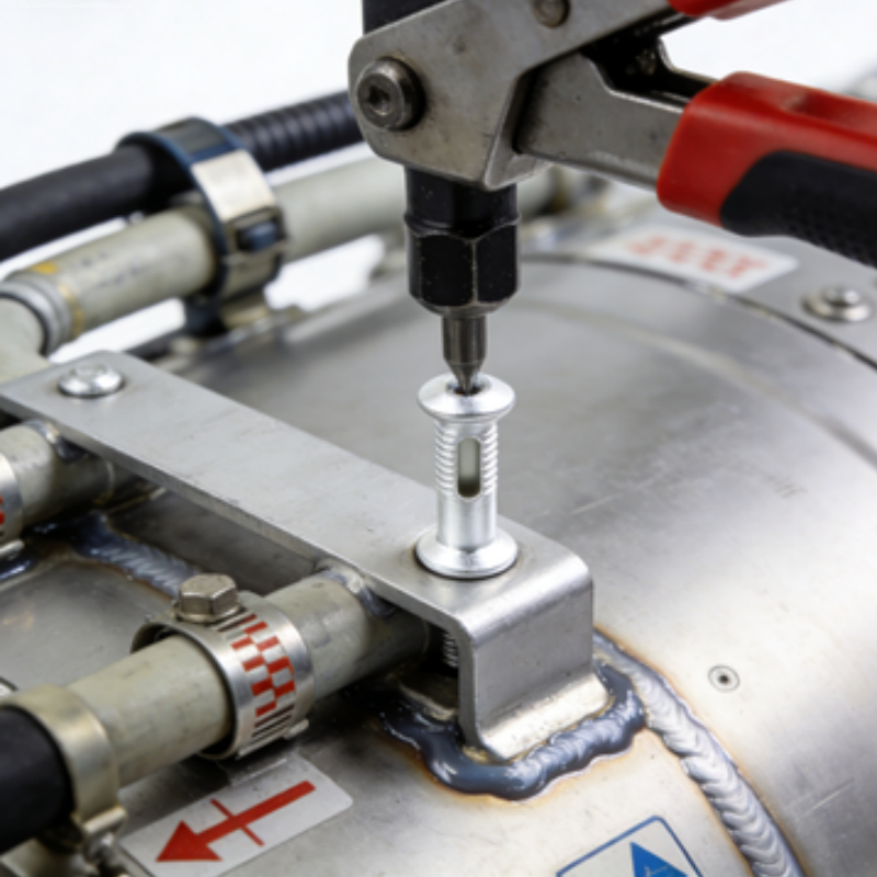 1 安装时请确保母钉垂直压入基材,避免倾斜导致铆脚不匀