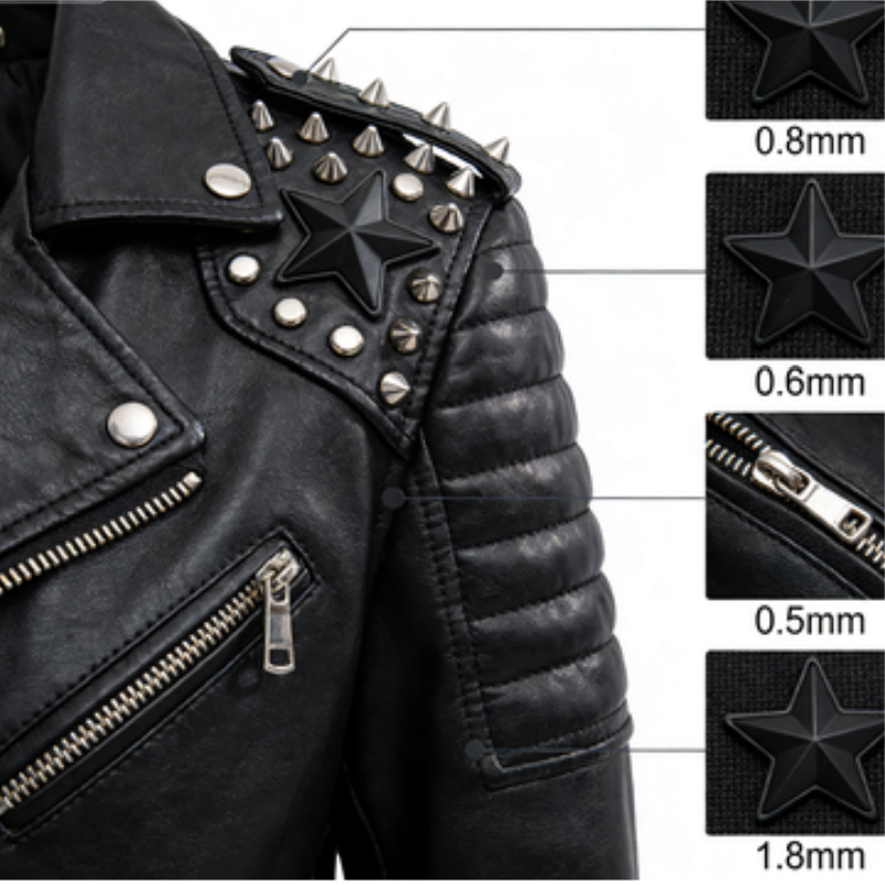 本产品为符合服饰配件标准的五角星合金铆钉,采用锌合金材料制造。独特的五角星造型设计兼具装饰与固定功能,通过铆接方式与服饰鞋包面料形成牢固连接,为DIY创作提供时尚美观的金属固定点。