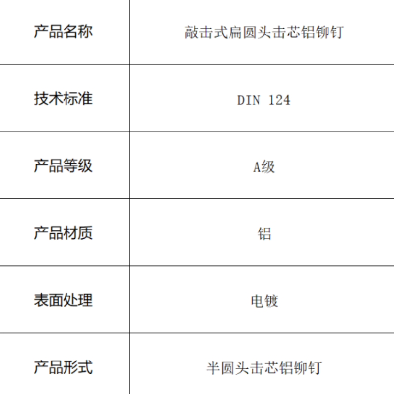 产品形式:半圆头击芯铝铆钉