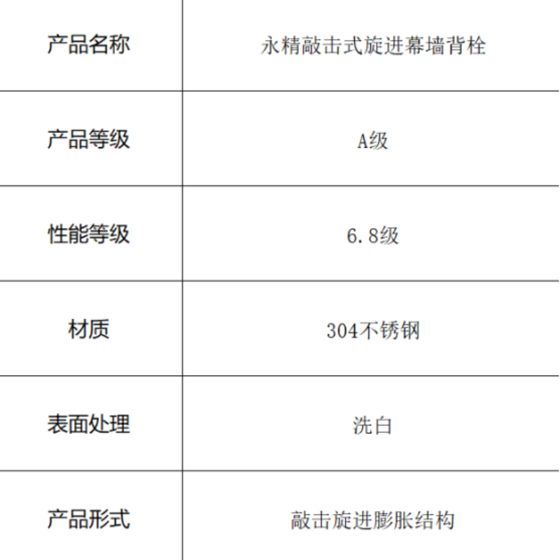 产品名称:永精敲击式旋进幕墙背栓