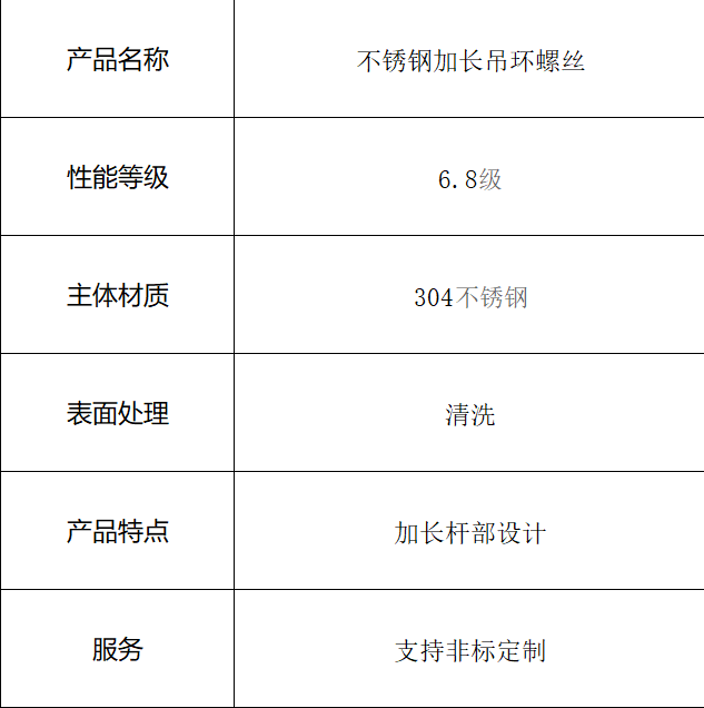 本品为不锈钢加长吊环螺丝,严格遵循GB/T825标准制造,性能等级为6.8级,选用优质的304不锈钢材质,并经过专业清洗处理,外观洁净。其加长设计提供了更大的悬挂空间,适用于需要额外安装距离的场合。我们支持规格型号的灵活定制,以满足您的特定需求。