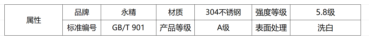 GB/T 901-A级-5.8级-304不锈钢-洗白